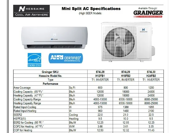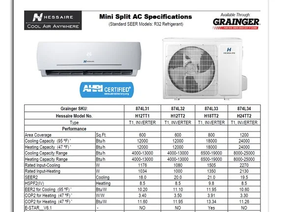 Mini Split Specs - High SEER